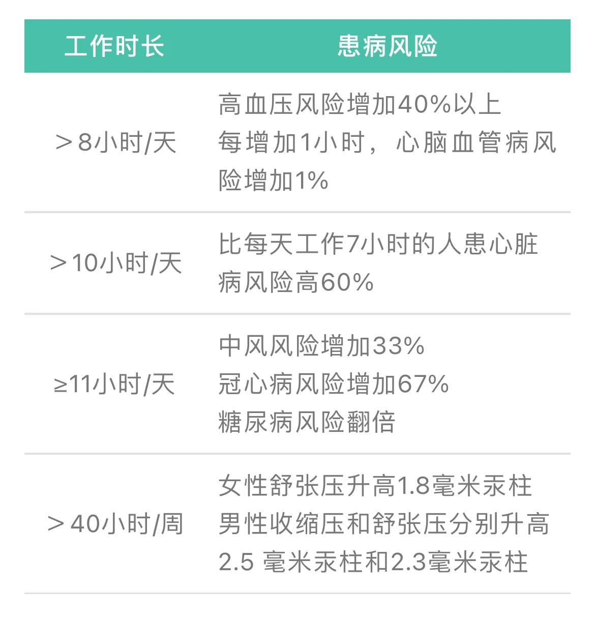 《生命时报》综合国内外多项研究发现,工作时长每增加一个小时,多种疾病的患病风险都会受到不同程度的影响。