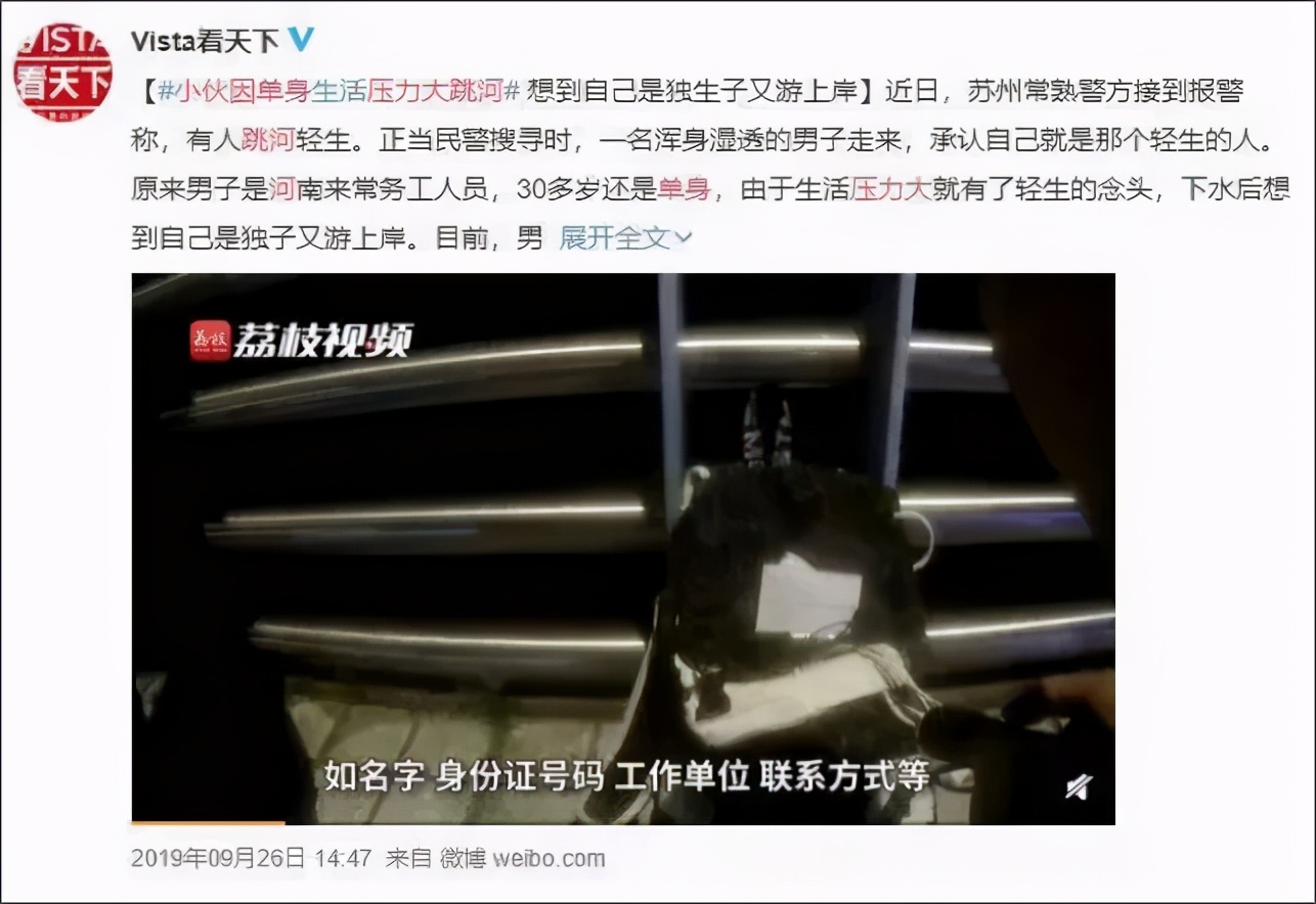 看过这样一个新闻,一名小伙因为生活压力太大,选择跳河轻生。