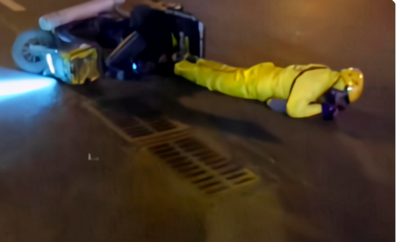 路人上前查看情况,发现他的头盔挡风罩摔破了,嘴里和鼻子不停地流血,意识已经不是很清醒。
