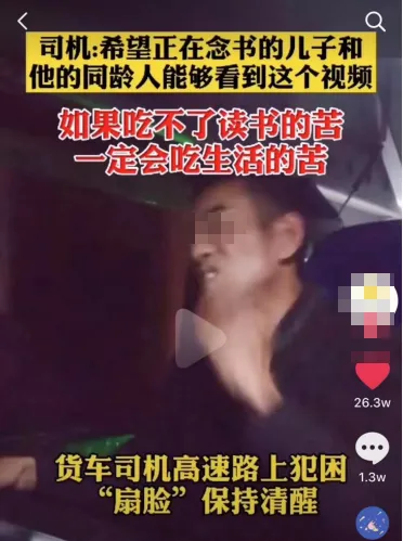 正如这名货车司机,为了让自己集中注意,不停地用手扇自己耳光。咬牙坚持的样子,就是成年人对生活的最大的对抗。