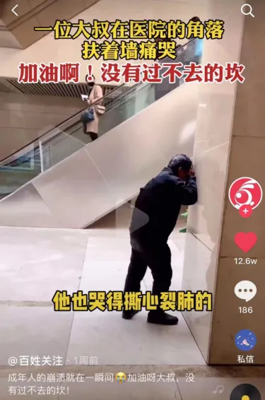 还有这位在医院崩溃痛哭的男子,他又是谁的父亲,是谁的丈夫?他到底藏着什么样的悲伤,才会在人来人往的医院扶墙痛哭?