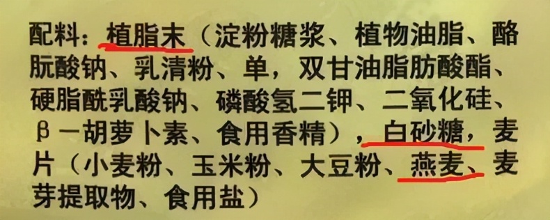 还有一类就是配料表中除了有燕麦,还添加了小麦、麦麸、香精、奶精等成分,这种产品的营养价值远远低于单纯燕麦的营养价值,不推荐大家购买了。