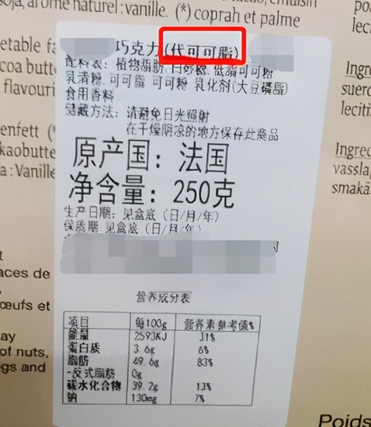 不过如果包装成分表上写的是“代可可脂”,可就要小心了,代可可脂是可可脂的“山寨货”,口感几乎能与可可脂媲美。