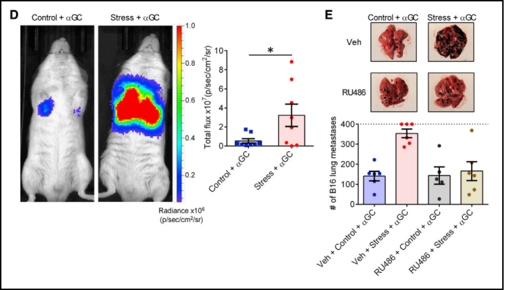 这是因为压力和焦虑会让身体释放糖皮质激素,而研究团队在小鼠模型上观察到了糖皮质激素对先天性T细胞的损伤,从而会大大加速癌细胞的发展和扩散。