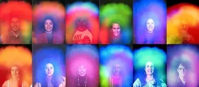 显示在照片上就是,在不同的人体周围有颜色不同的光晕。