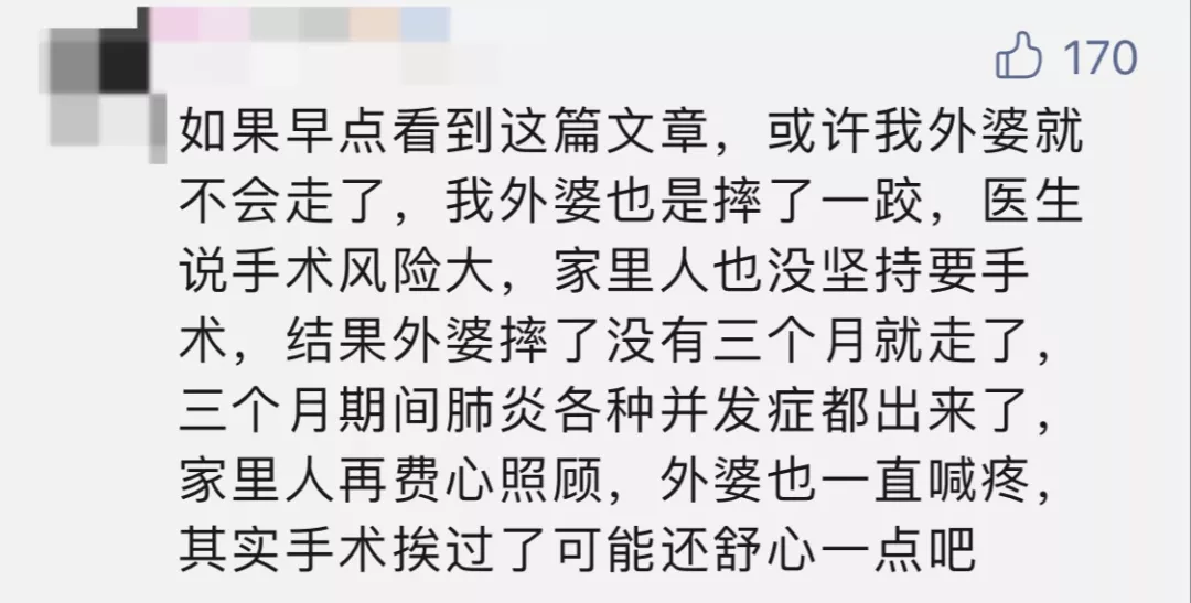 丁香医生曾多次科普过跌倒和髋部骨折的知识,评论区有很多读者表示,曾经因为没有注意跌倒的问题,最终造成了悲剧。