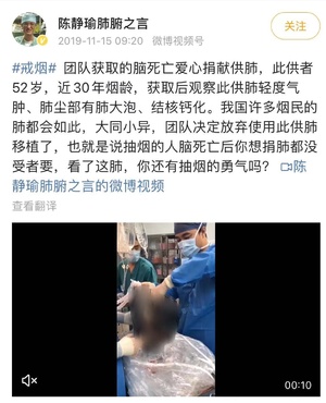 网友们都说这是最好的戒烟广告,若没有活生生的例子,长期吸烟的人可能意识不到吸烟对肺部的伤害有多大。