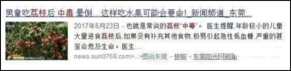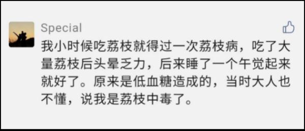 年年都有人吃荔枝进医院!   哈尔滨市第一医院内分泌科主治医师陈萍2019年在健康时报刊文谈到,荔枝吃多了可能会出现低血糖,患上“荔枝病”。