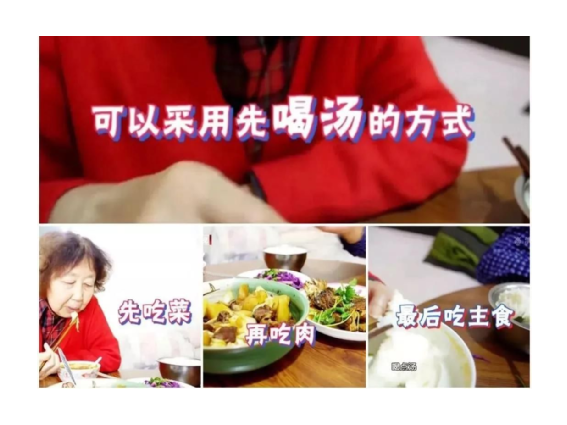 推荐按照先喝汤,再吃菜、吃肉,最后吃主食的顺序,这样可以利用汤和蔬菜,让胃部产生一定饱腹感,帮助我们避免食物摄入过多。