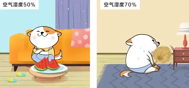 在同一温度下, 空气湿度不同, 给人的感觉也不一样,空气湿度大,体感温度和实际温度相差大,就会感到越热。