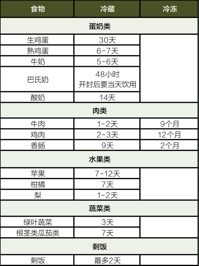 冰箱让食物的保质期延长并不是将食物的细菌也杀灭,只是通过低温的形式抑制了部分有害菌的繁殖,具体的食物存放时间可以参考以下的【食物储存时间表】。