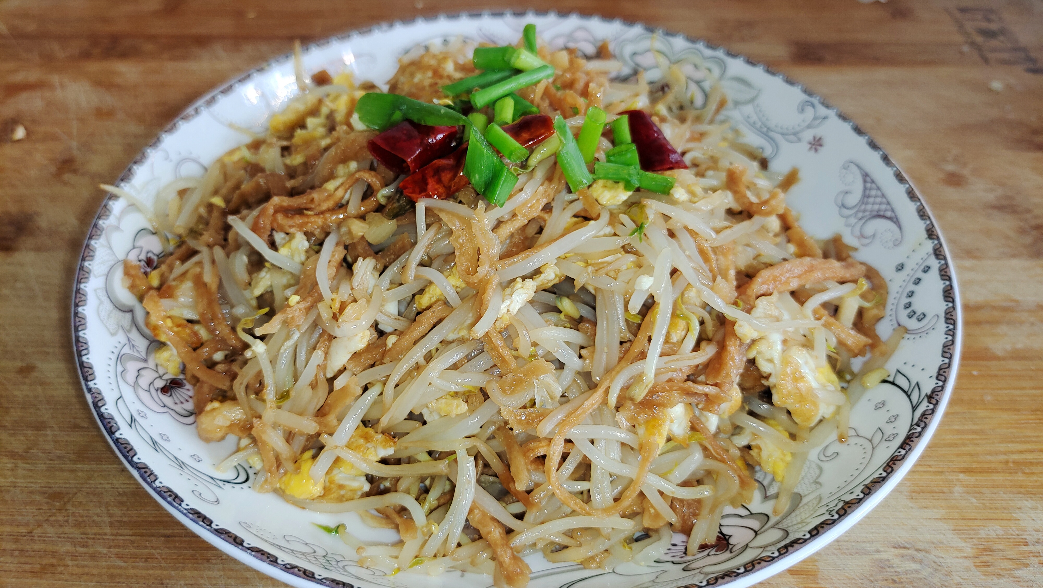【推荐美食——绿豆芽馓子炒鸡蛋】