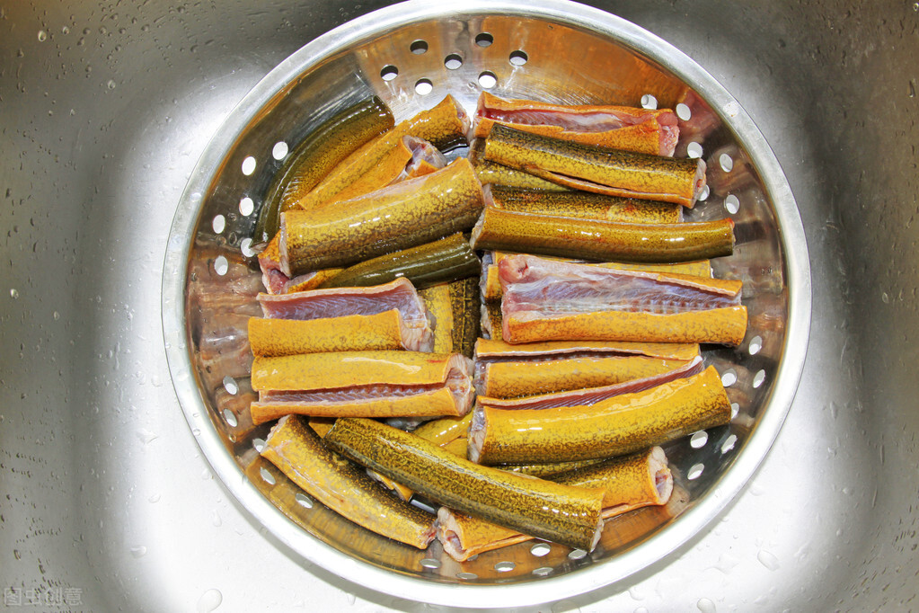 - 鳝鱼可以请摊主宰杀,清洗干净后改刀成段,为了方便入味,可以在鳝鱼段上改几刀。