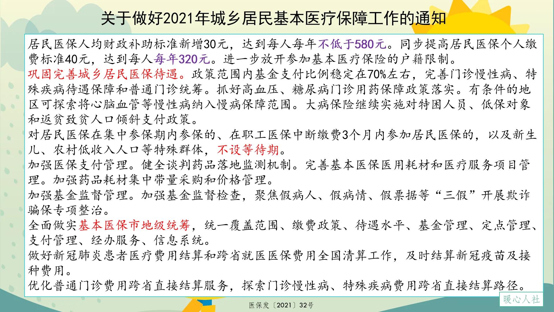 除了个人负担部分上涨以外,国家财政补助标准也在上涨。2019年政府财政补助标准每人每年不低于520元,2020年是550元,2021年是580元。