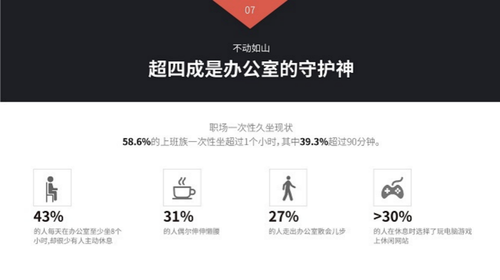 根据《2019中国职场久坐行为白皮书》显示,