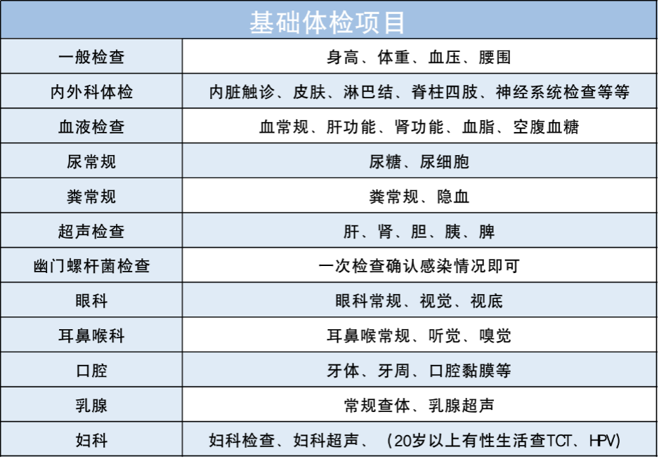 首先,基础体检项目不能少,