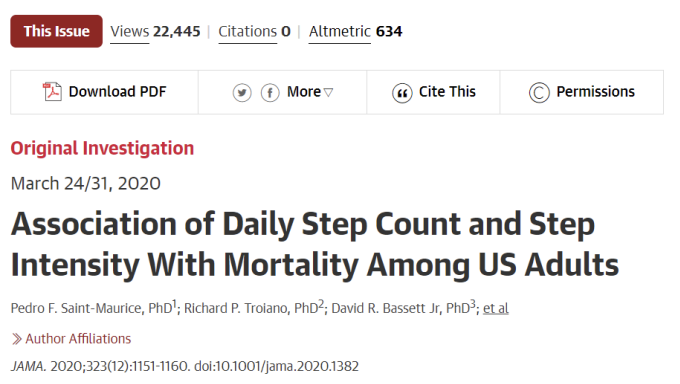 去年,一项由美国国立卫生研究院(NIH)、美国国家癌症研究所(NCI)、美国国家老龄研究所(NIA)以及疾病控制与预防中心(CDC)主导的十年大型研究发现,每日步行步数越高,全因死亡风险越低。