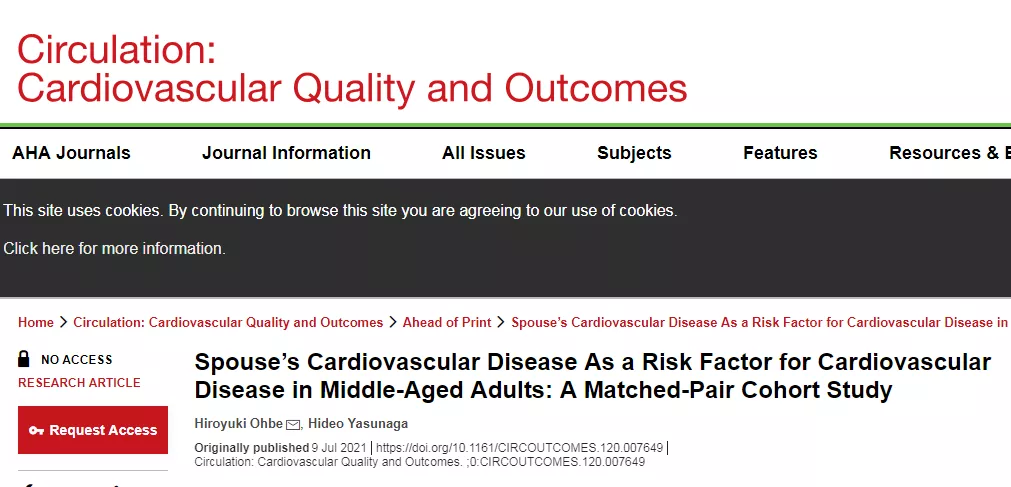 日本东京大学的研究人员利用日本医学数据中心数据库(2008年4月~2018年8月)中的23万多对中年夫妇数据进行了一项配对队列研究。