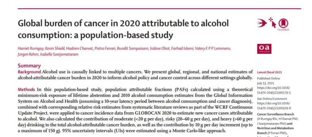 近日,《柳叶刀·肿瘤学》上一项最新研究发现,2020年全球大约有74万例的新发癌症因饮酒所致。