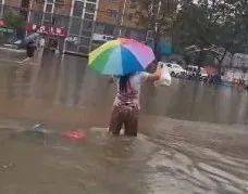 在新乡街头,她打着伞站在没过大腿的洪水里,拎着一个塑料袋,翘首以待。 一辆消防车走过,她不顾车内人“别过来啦,别过来啦”的劝阻,在大水中跟着消防车跑起来。