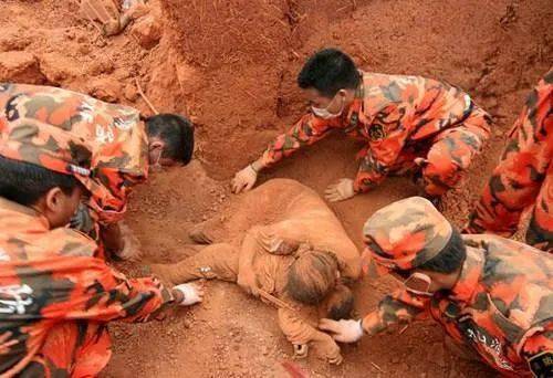 当救援人员把孩子的妈妈,从废墟里抬出来时,难过极了: