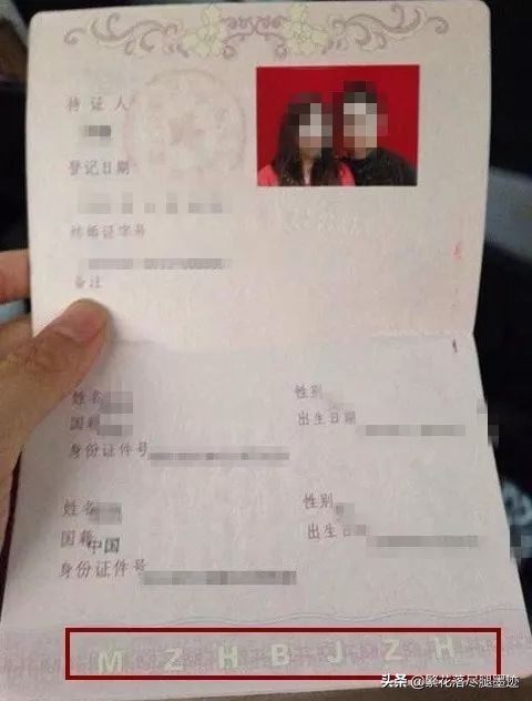 结婚证内页的最下面有一排字母——M Z H B J Z H是“民政部监制”的意思。