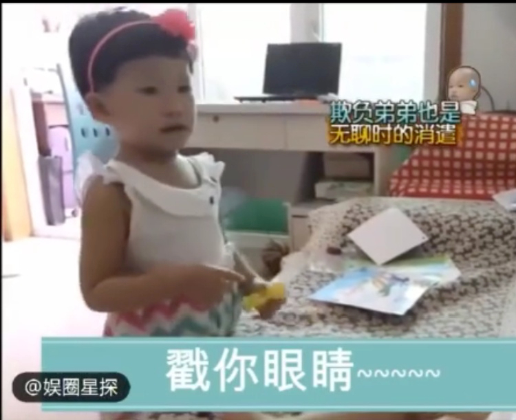 在娱乐圈,郭麒麟一直以礼貌待人著称。 郭麒麟和父亲坐在一起时,永远挺直腰杆,毕恭毕敬。父亲说话时,永远站在身后,认真聆听,回话时都是“您”开头。 对外,也是谦卑有礼,见到长辈,赶紧弯腰打招呼,嘘寒问暖身体如何?别人帮忙时,“谢谢,麻烦您了”常挂嘴边。 父母的一言一行都是孩子的“标杆”。 想要孩子成为什么样的人,父母要先行。 2. 管好自己的情绪,培养孩子的好性格 看过这样一个视频,二胎家庭里,姐姐无聊时会用手戳弟弟眼睛。