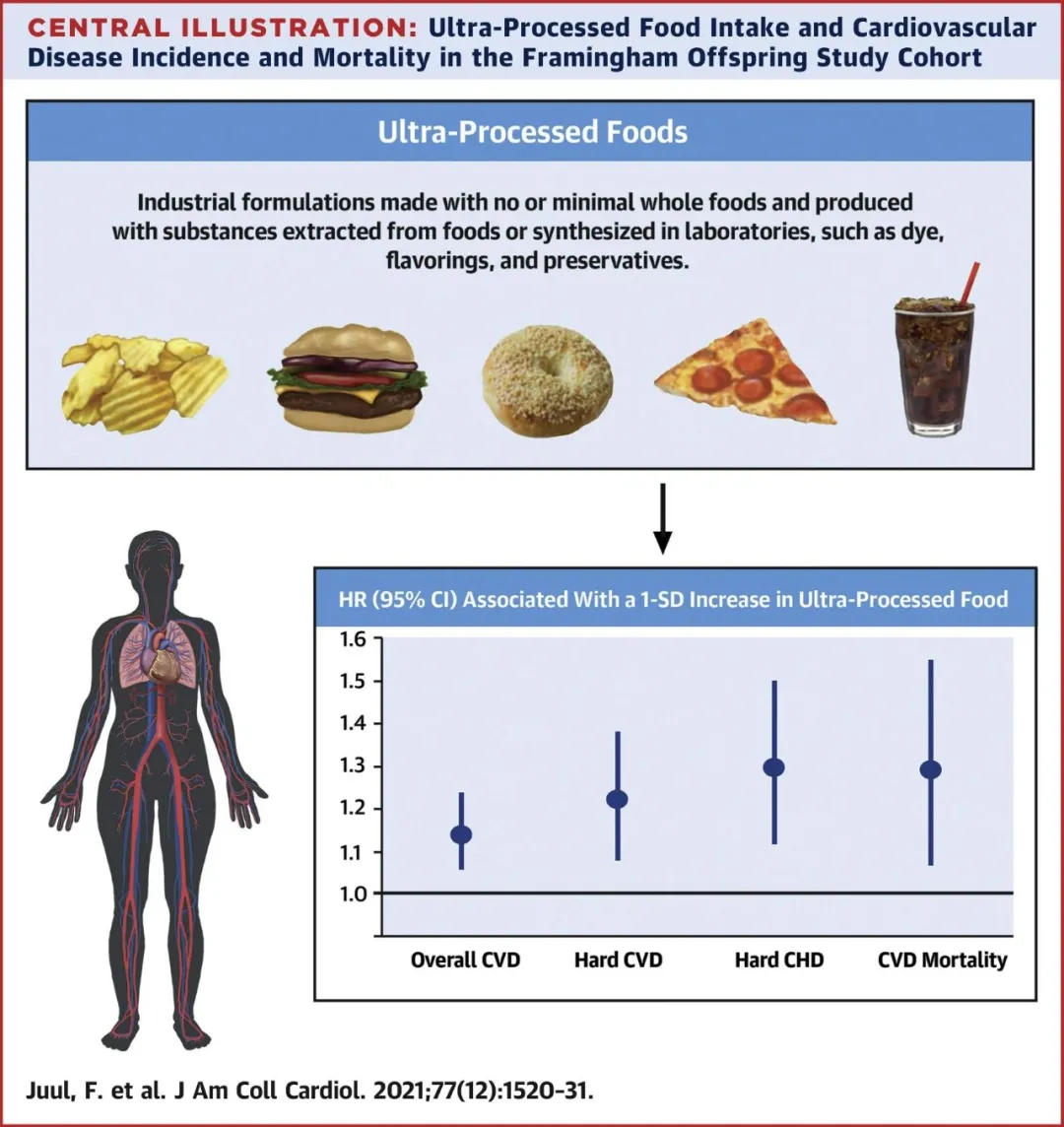 2021年3月,发表在《美国心脏病学会杂志》(JACC)上的一项研究最新分析发现,经常吃“超加工食品”,会增加心血管病风险,每天吃得越多越危险。