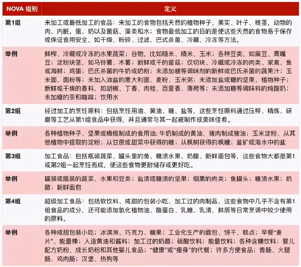 超加工食品是NOVA食品分类系统中的一个类别,该系统得到了包括联合国粮食和农业组织在内的全球卫生机构的认可,并且被全球许多研究人员使用。  NOVA分类系统