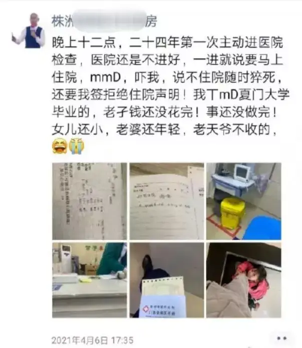 医生要他立马住院观察,他却没放在心上,还在朋友圈发文吐槽。