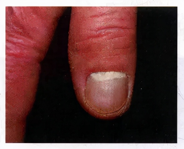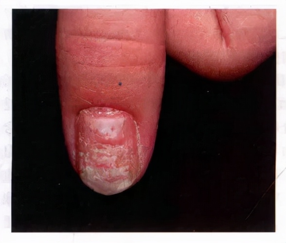 近端甲下型甲癣(图引自《皮肤性病学》)