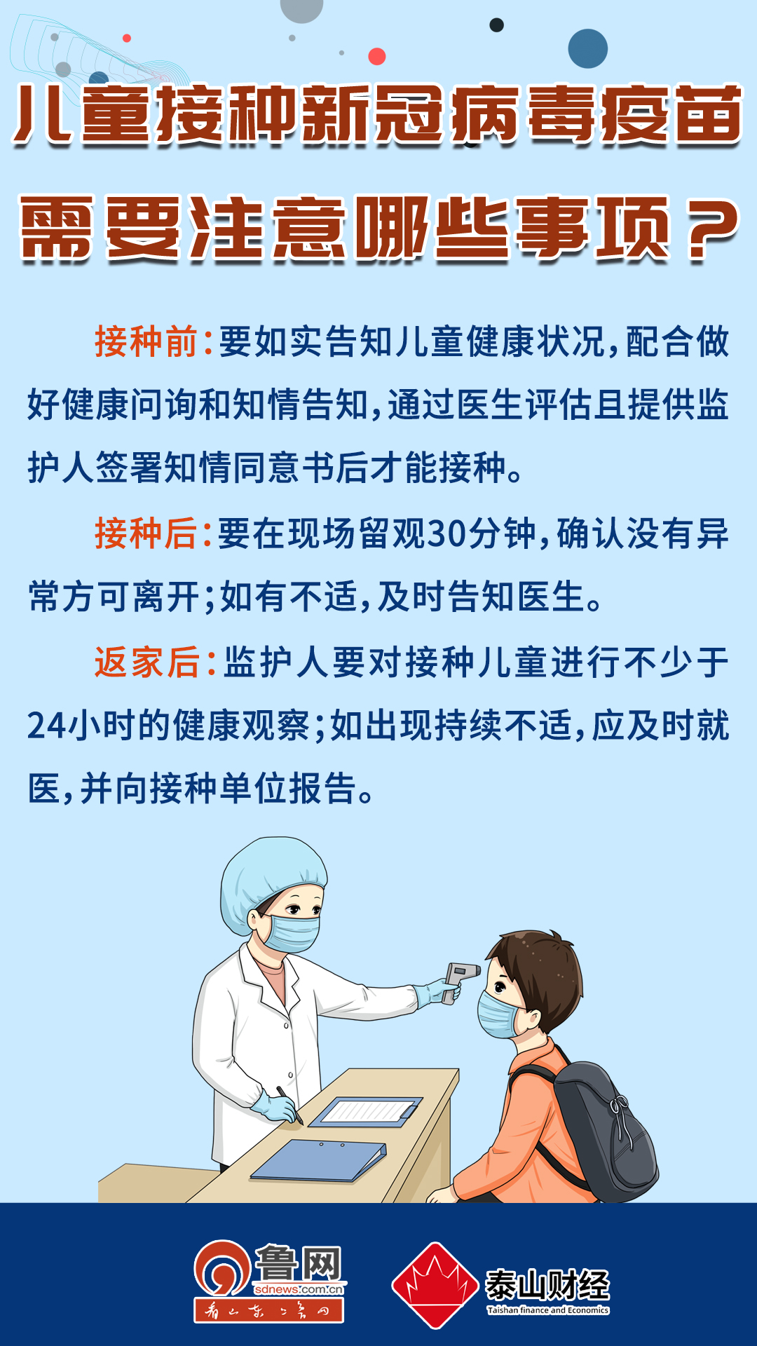鲁网11月1日讯按照国家整体部署,山东省全面启动3-11岁人群新冠病毒疫苗接种,儿童接种新冠疫苗需注意哪些事项?家长和孩子们一起来看看: