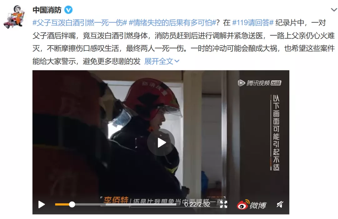 2020年6月3日,重庆市渝中区一对父子酒后拌嘴,一气之下竟互泼白酒,还点火引燃两人的身体。