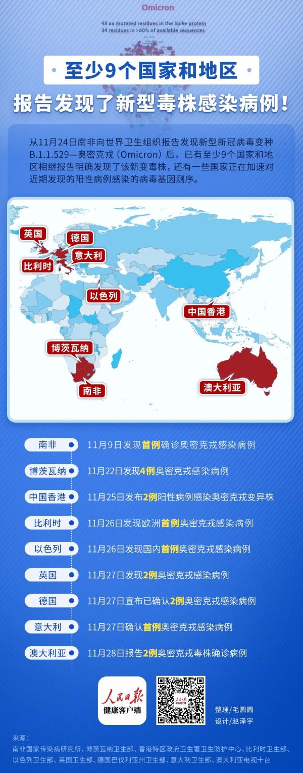 已有9个国家和地区报告奥密克戎感染病例