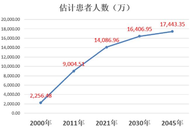 根据预测,未来20余年虽然我国糖尿病患病率增幅会趋于下降,但患者总数将增加到2030年的1.64亿和2045年的1.75亿。