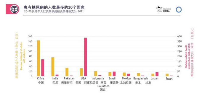 根据新版国际糖尿病联合会(IDF)地图数据显示,过去的10年间(2011年~2021年),我国糖尿病患者人数由9000万增加至1亿4000万,增幅达56%,其中约7283万名患者尚未被确诊,比例高达51.7%。