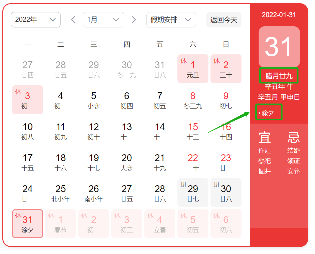 今天一个年轻的朋友突然很惊奇的对我说,今年正月没有初一哎!说完拿着日历给我看,春节过后就是初二。唉,现在这年轻人。 其实春节当天就是初一,而我们常说的大年夜是除夕这一天。今年腊月只有二十九天,所以大年夜是在腊月二十九,今年是没有腊月三十才对。