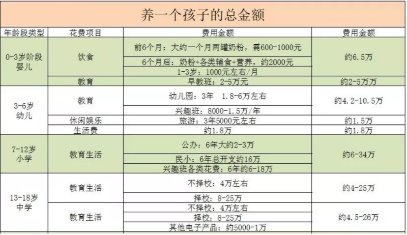 而养孩子的钱,也不止最初的尿布、奶粉钱。