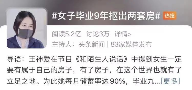 前段时间看到一个新闻,32岁的豆瓣女“抠神”王神爱自述,毕业9年,她从牙缝里“抠”出两套房。