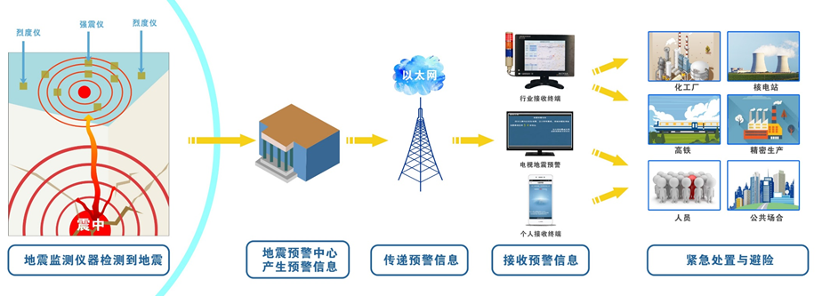 地震预警是指在某个地方的特大地震发生之后,抢在地震传播之前,将地震的消息先一步传播给附近的地区,让人们有一些准备的时间,根据离地震震源的距离,通常可以提前几秒或者几十秒发出警报。而根据研究表明,如果提前3秒预警,可以使人员伤亡比减少14%;提前10秒预警,人员伤亡比将减少39%。
