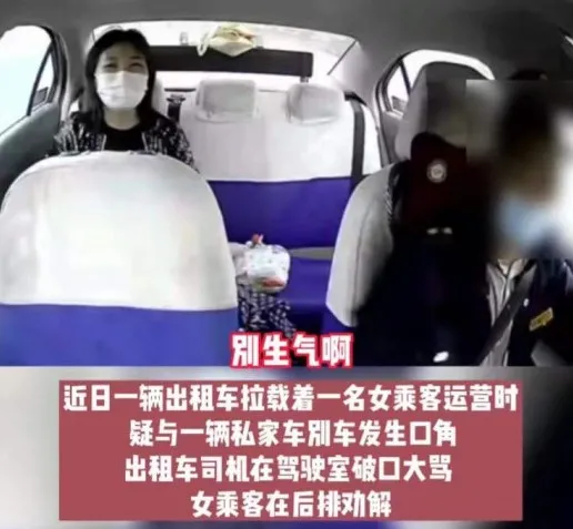 后面坐着的女乘客见司机情绪激动,在一旁好言相劝: