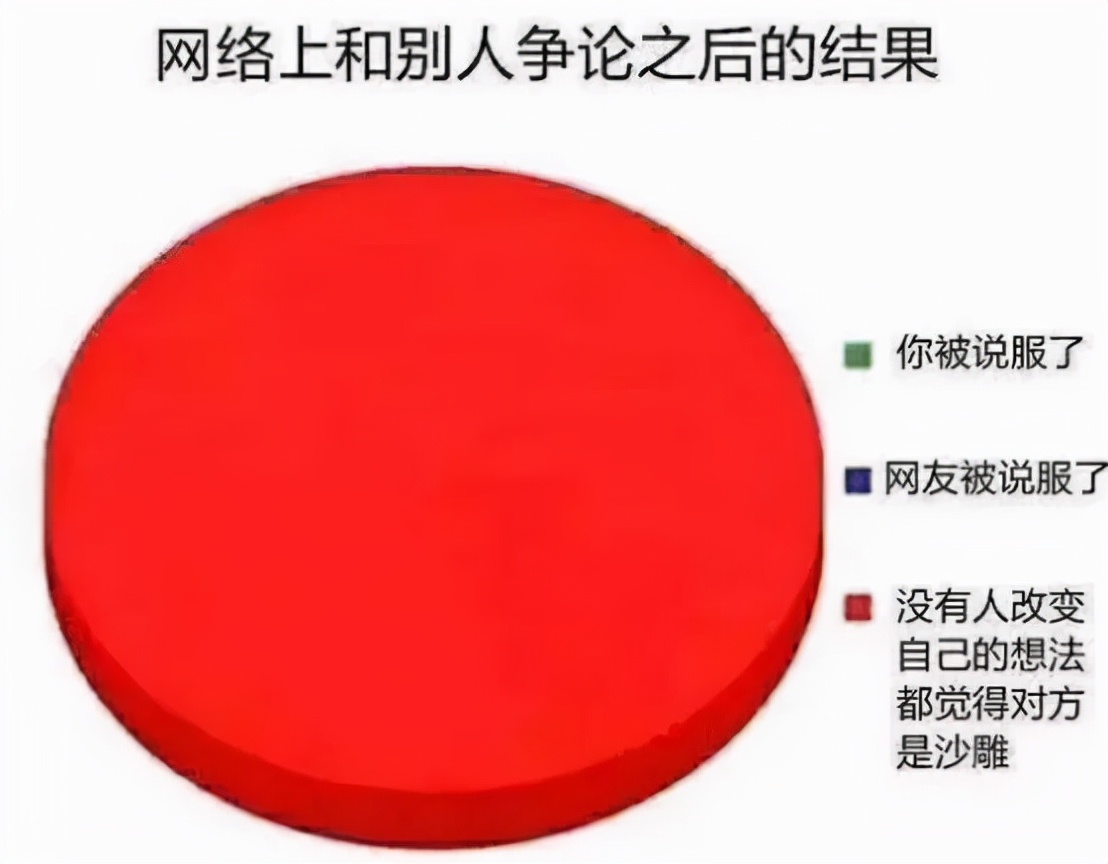 你在网上跟人争辩唯一的结果就是,你们谁也说服不了谁,只会觉得对方是傻逼。