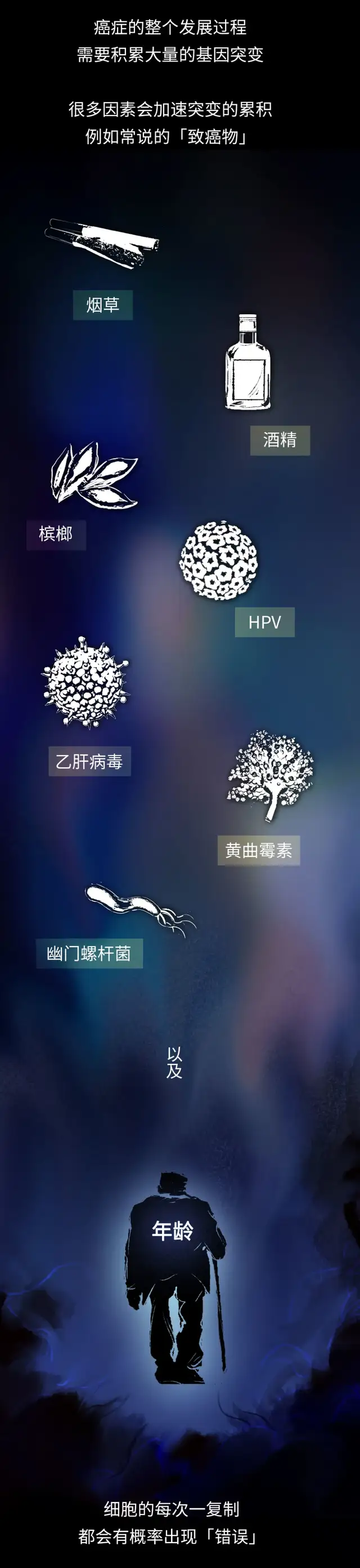 这也是为什么烟草、酒精、槟榔、HPV、65℃ 以上热水等被归为致癌因子——