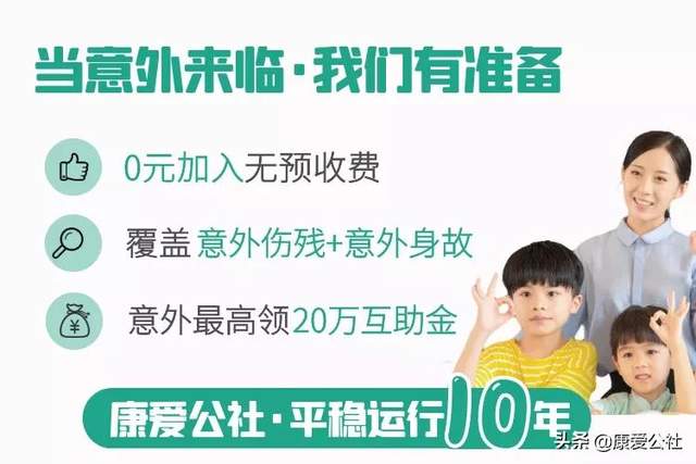 在此,重点推荐康爱公社综合意外互助社,保障范围覆盖意外伤残(1-10级)和意外身故,互助金最高可申请20万元!