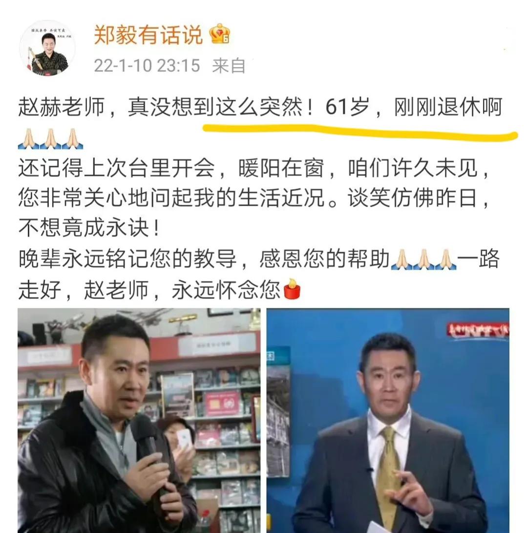 在网友看来,赵赫年纪还轻,才61岁刚到退休年龄,怎么说走就走了?