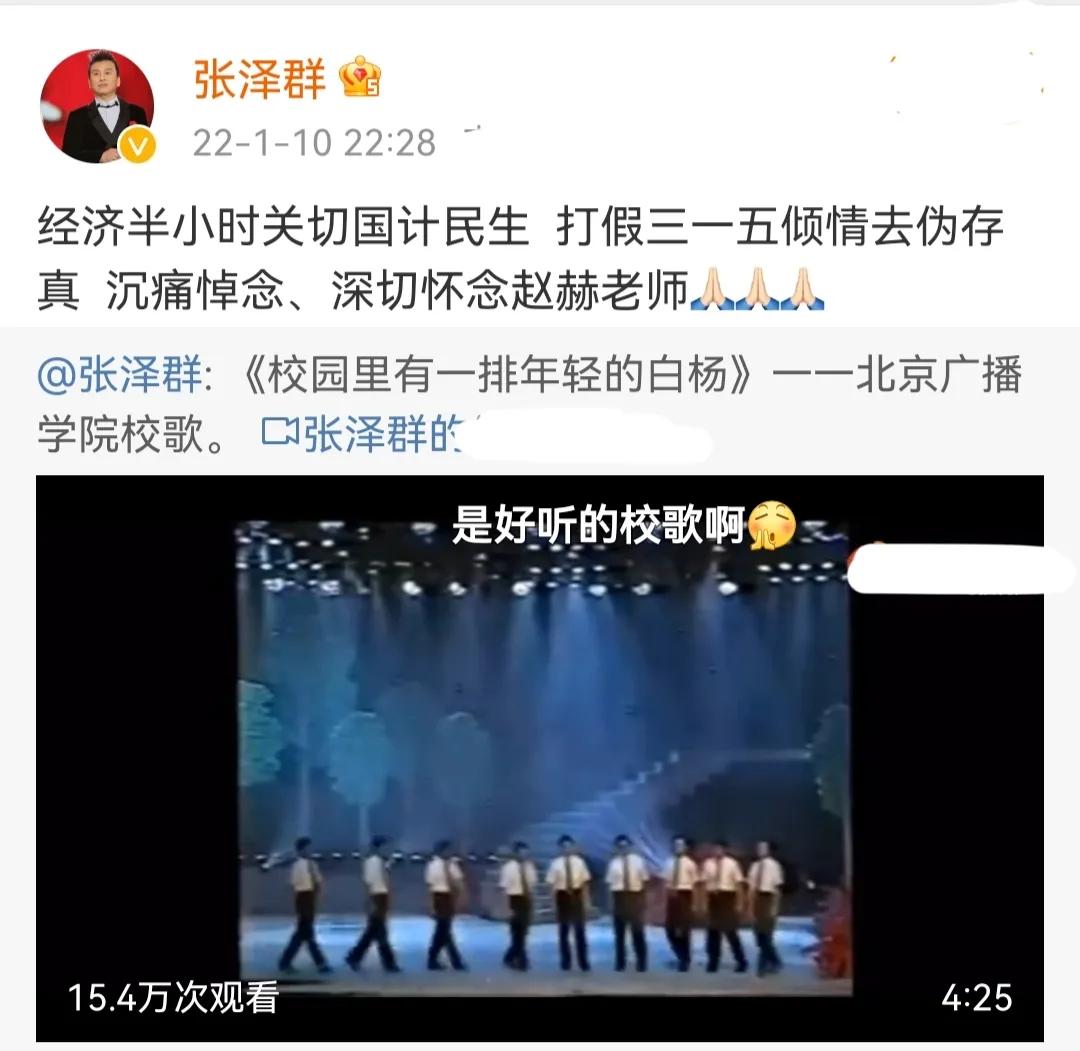 如果不是央视主持人张泽群在社交平台上发文,很多人大概还不知道,央视二套《经济半小时》节目主持人赵赫,突然去世了。