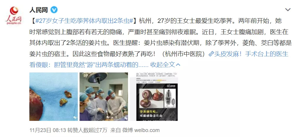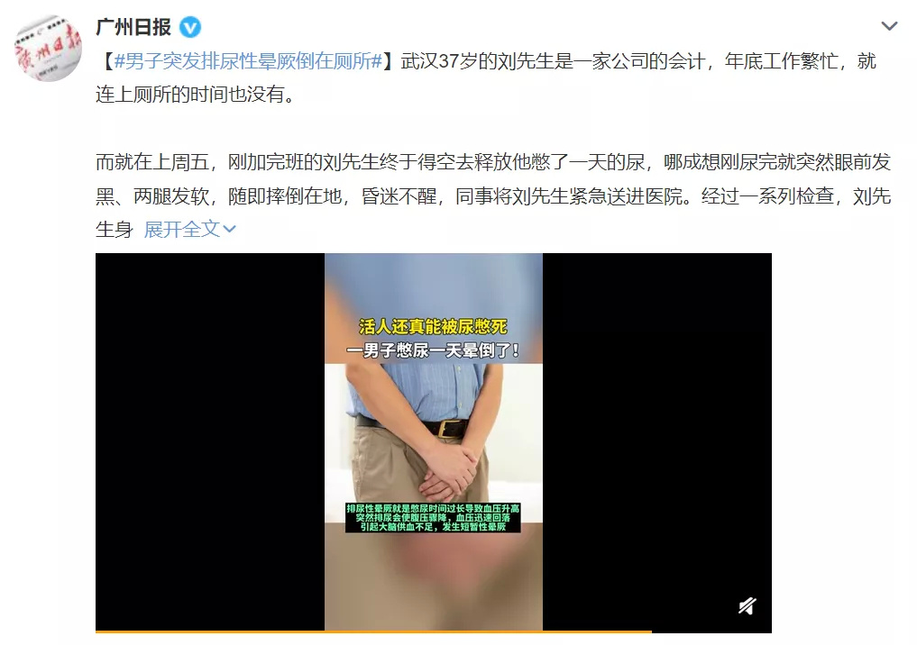 几乎每一天,我们都会看到各种奇葩的新闻事件。有一些新闻看完就一笑而过了,但有一些,却让人感到无比震惊: 图片来源:新浪新闻微博 男子因为咳嗽和肺部不适住院,按照普通肺炎治疗后不见好转,医生百思不得其解,最后发现,竟是肺部真菌感染。而背后的原因更出人意料,竟然是因为他每天都闻自己脱下来的臭袜子! 其实,这样的新闻还有很多,这些看起来很小概率的事,背后却藏着不容忽视的安全隐患。 我们找到了 10 个大家生活中可能会忽视的小事,给大家一一讲解,快坐好小板凳,做好小笔记了。 图片来源:网络 01 挖鼻孔只是一时爽,危险! 很多人都喜欢闲着没事抠一下鼻孔,然而这却是一个很危险的操作,可能会导致颅内感染。 长沙的一名 5 岁男孩就因为爱挖鼻孔患上了「蜂窝组织炎」,脸肿得神似「奥特曼」。 图片来源:江苏新闻微博 我们的手指上有很多细菌病毒,挖鼻屎相当于亲手把它们送进了鼻腔。虽然免疫系统可以干掉细菌,但如果免疫力差或者不小心抠破了,细菌就可能趁虚而入。 鼻子和周围区域构成的「危险三角区」,让细菌能够抄近道钻进脑袋里,可能造成海绵窦感染和颅内感染。一旦细菌突破防线进入全身,引发多器官衰竭,后果更不堪设想。 虽然概率并不高,但概率低不等于不会发生。所以还是管住自己的手,抠鼻孔、拔鼻毛、挤三角区痘痘和这些危险操作,就忍一忍吧。 02 荸荠别生吃,小心寄生虫! 荸荠,也就是我们俗称的马蹄,剥了皮直接吃清脆爽口,是很多人的最爱。但生吃荸荠,可能会有寄生虫感染的风险。 杭州的王女士就因为生吃荸荠后腹痛入院,结果在体内取出了 2 条活的姜片虫。 图片来源:人民网微博 荸荠是一种水生植物,很容易被水中一些寄生虫的幼虫,比如姜片虫寄生。 当用牙啃荸荠皮或者生吃荸荠时,幼虫可能会进入体内、寄生在小肠并发育为成虫,导致姜片虫病,出现腹痛、腹泻、恶心、呕吐、发热和水肿等症状,严重时可能引发肠梗阻,甚至死亡。 因此,荸荠最好不要生吃。同样,菱角、茭白、莲藕等水生植物也建议做熟了再吃。 03 尿尿急不得,否则会晕倒! 很多人早晨起来被尿憋醒后会痛快地大尿一顿,感觉这样特别舒爽,但随之而来的,可能是一场昏厥。 武汉的刘先生就因为尿得太急,昏倒在地,被同事送进了医院。 图片来源:广州日报微博 尿个尿也能晕倒?没错,这种现象被称为「排尿性晕厥」。 过猛过快的排尿,会让迷走神经过度兴奋,从而抑制心脏活动、使心率下降;同时膀胱快速排空、腹压突然下降、流回心脏的血液减少。 这一来二去,心脏供给大脑的血液不足,再加上刚睡醒或者太疲惫时脑袋本就昏昏沉沉,晕厥就发生了。 不过排尿性晕厥不是大问题, 1~2 分钟内可自行苏醒,也不会有什么后遗症(一旦情况严重,还是要及时送往医院治疗),但更大的隐患在于晕倒时容易发生磕碰,如果撞到重要部位可能会有生命危险。 所以,尿尿这件事,还是不要太急了。最重要的是,能不憋尿就别憋。 04 大便 3 分钟就好,别太用力了 除了痛快地尿,很多人也喜欢痛快地拉,但是「屎学」讲究量力而行,用力太猛,后果可能很严重。 大便太用力,还真会引起脑溢血。 图片来源:观察者网微博 虽然新闻里这名男子本身就有动脉瘤这个导火索,即使没有排便用力这件事,也可能有其他因素导致破裂出血。 但我们要知道的是,排便这件事,太用力了可能会得不偿失:血压升高、肌肉强烈收缩,不仅容易得上痔疮,还会增加心脏的负担;太久了也会增加脱肛、痔疮的风险,尽量在 3 分钟内解决比较好。 05 小颗粒食物,一定要慢慢吃 冬天到了,花生瓜子成了很多人家庭桌上的饭后小零食。但这小玩意儿,一不小心可是会惹大事的。 新闻里就讲了这样一个特殊的病例:67 岁的老人连续 9 年反复咳嗽,一直治不好,症状日益严重,住院检查才发现是支气管被一粒花生米堵住了。 图片来源:人民网微博 有些时候,被小颗粒食物呛到后,不会出现急性的「气道异物」症状,容易被我们忽视。但这样的危害是慢性且累积的。 因此在吃东西,特别是小颗粒食物时,一定要小心慢吃。当感到有异物掉进了气道,或发生了剧烈呛咳,不能掉以轻心,应及时就诊。 对于小朋友而言,小颗粒食物也可能会堵住气道,导致急性症状,比如憋气、呼吸困难、窒息等,这时可以采用世界通用的气道异物急救方法——海姆立克急救法。 06 误吞枣核别大意,两头尖尖是凶器 除了呛到气管里的异物,吞到食道里的异物也一样有风险,可能会导致食道或肠道的损伤或穿孔。 图片来源:江苏新闻微博 很多中老年人习惯煮粥时把红枣煮得软烂,就着汤喝下肚,很多时候,根本不记得自己吞下了枣核,或者觉得能够自己排出去,结果却腹痛难忍进了医院。 别看枣核小,但它两头尖尖,对食道和肠道可算得上是十分危险的凶器。 因此提醒大家一定要时刻小心,特别是给老人和小孩吃的,在煮粥熬汤之前记得先把枣核剔掉。 07 剩菜剩饭热透了吃,远离致病菌 吃生食或没热透的饭菜,可能会造成致病菌感染,严重时会威胁生命。 广州的陈女士很可能因为吃了没热透的剩饭菜,感染了李斯特菌,导致了脑膜炎,险些丧命。 图片来源:央视网微博 导致脑膜炎感染的罪魁祸首,是剩饭剩菜中的一种有致病性的李斯特菌。这种菌可以在冷藏温度下的食物中繁殖、在冷冻温度下生存,被称为「冰箱杀手」。 李斯特菌感