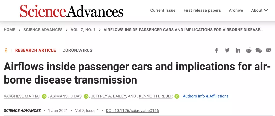 美国《科学进展》杂志2021年刊登一项研究指出,车内空气质量和新冠等高传染性呼吸道疾病有直接联系。