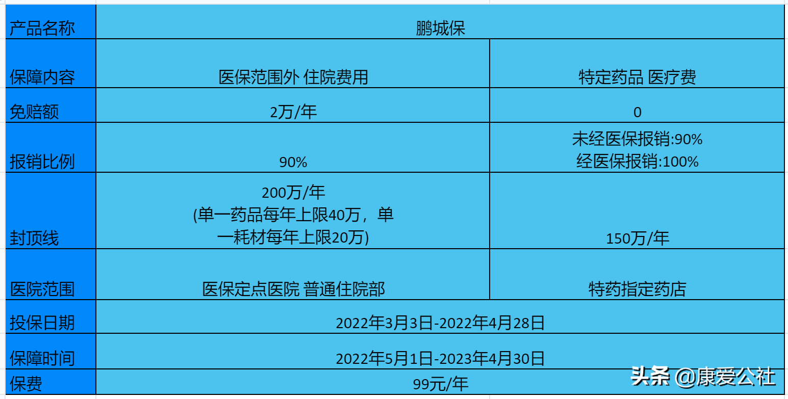 整体来看,就鹏城保99元每年的费用来说,匹配这个保障范围和相关免赔额,也还是可以的。毕竟,投保和医保一样,无健康告知,不限身体健康状况,特别是对于身体条件不是很好的深圳朋友们来说,将这款保障,作为自己医保外的补充,还是非常不错的。