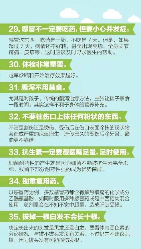 导语:一提到医学,我们都脑子便立即浮现出身穿白大褂都医生形象,实际上医学远离我们并不遥远,掌握一些基本都医学常识,不仅可以帮助我们在紧张的工作中过得更加健康,还可以帮助我们应对各种意想不到的突发状况。 下面,小编就详细为大家介绍一些医学健康知识,希望大家都能了解下。 60个医学健康知识,非常实用,你知道几个?建议收藏+分享
